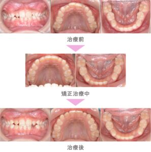 インビザラインファースト(小児矯正)の症例のご紹介です。この患者様は、東京都大田区内からご来院の小学生女子で、歯のすき間と前歯が咬み合わないのが気になりご来院されました。すきっ歯(空隙歯列)の症状があり、歯ぎしりもする為、マウスピースがクッションの役割をするインビザラインファーストにて非抜歯で治療を行いました。治療期間は1年8か月です。歯列が拡大され、歯の隙間も整い、綺麗な歯並びになりました。