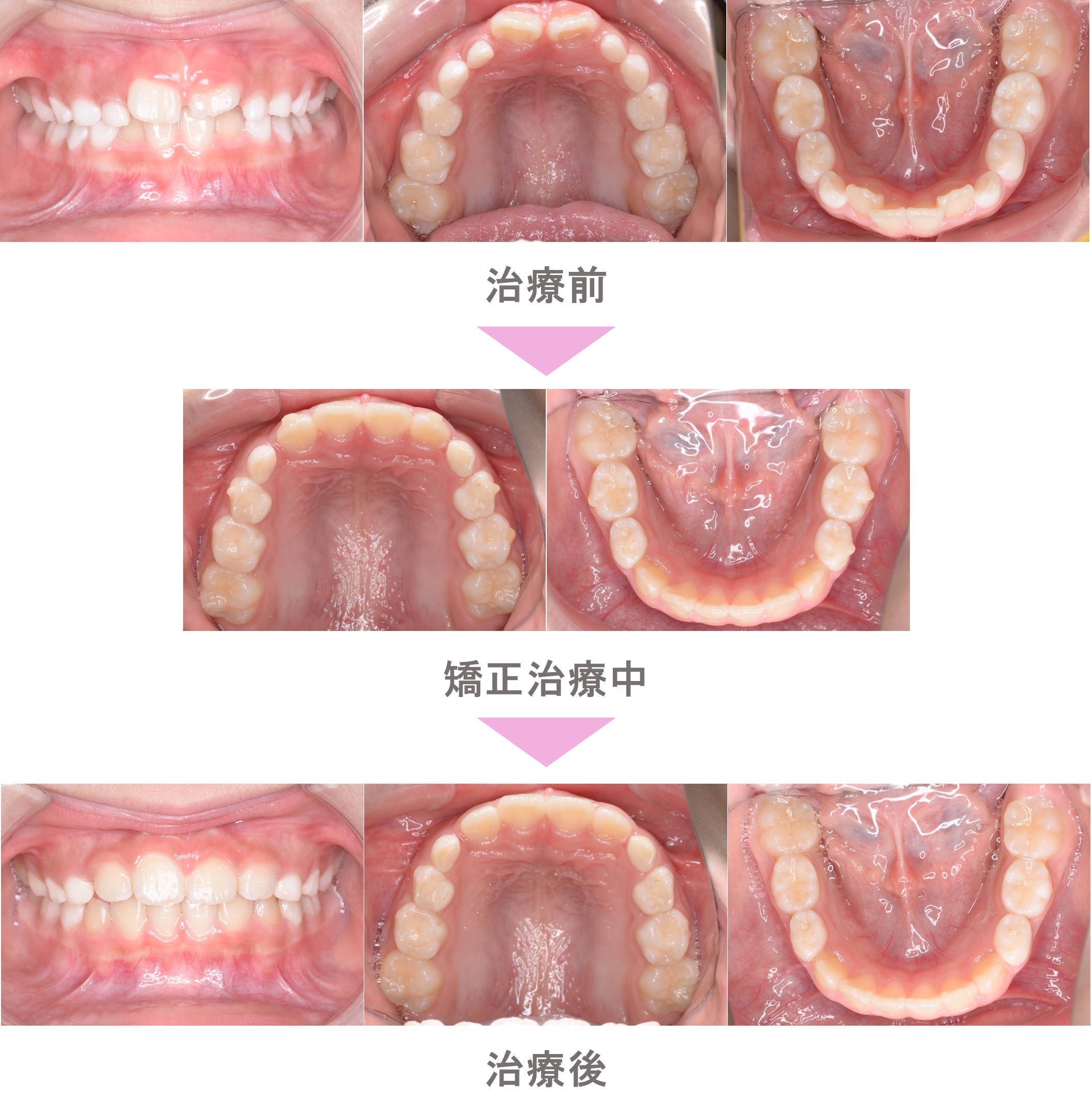 インビザラインファースト(マウスピース小児矯正)の症例紹介|叢生(前歯のでこぼこ)の症状|非抜歯による矯正治療|治療期間は1年3か月(東京都世田谷区・小学生女子)